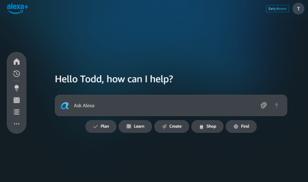 Outro ponto importante é a experiência multi‑dispositivo: você pode começar uma conversa no navegador e continuar no Echo ou Fire TV sem perder o contexto. Isso amplia o papel da Alexa+ para além de uma assistente de voz, transformando-a em uma central de IA pessoal acessível em qualquer lugar.