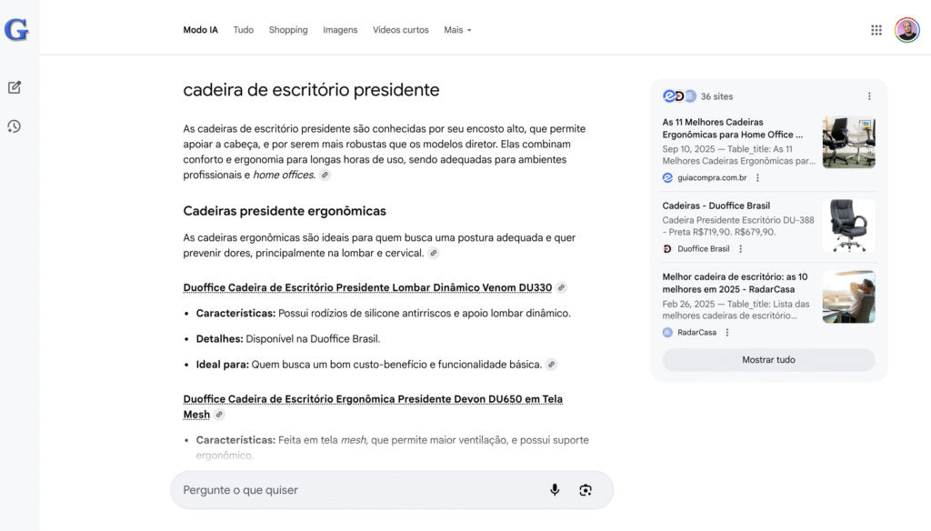 Atualmente os resultados do Modo IA também são 100% orgânicos.